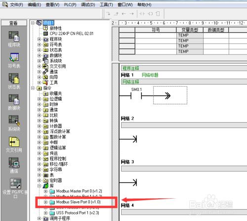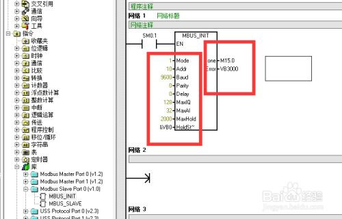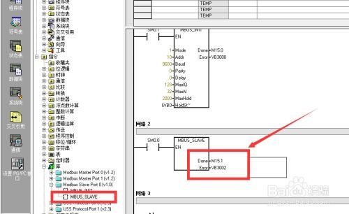 25、然后选择【MBUS-SLAVE】创建到程序块2中,然后设置参数值;