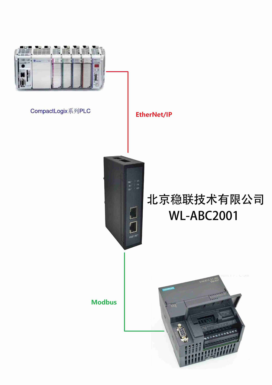 本案例为西门子S7-1200 PLC通过稳联Modbus转EtherNet/IP网关连接AB PLC的配置案例。
