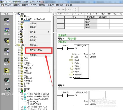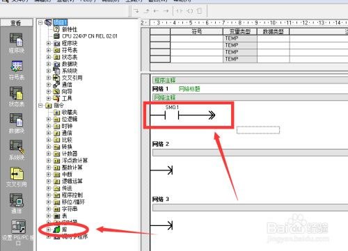 21、将常开触点命名为【SM0.1】,在项目树中找到【库】点击打开;