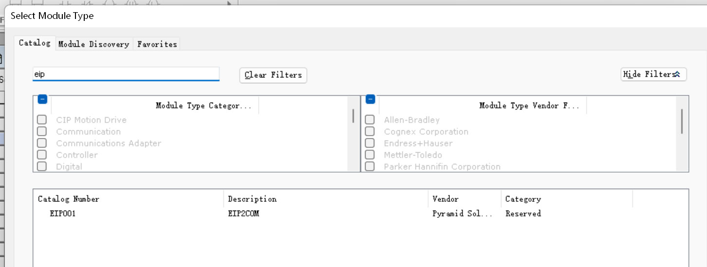 7、输入EIP寻找Modbus转EtherNet/IP网关模块,名称显示为EIP001;