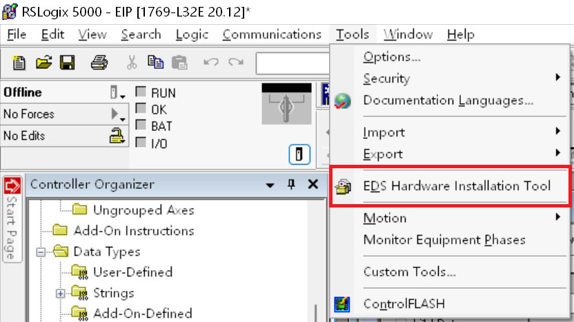 5、操作步骤,打开RSLogix5000,进行硬件组态,首先添加Modbus转EtherNet/IP网关的EDS文件;