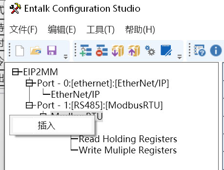 15、在Modbus RTU处单击鼠标右键选择插入从站站号;