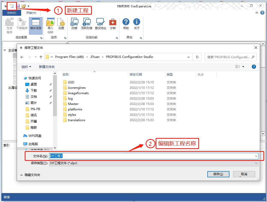 2、首先用PROFINET转PROFIBUS网关配置软件新建工程;