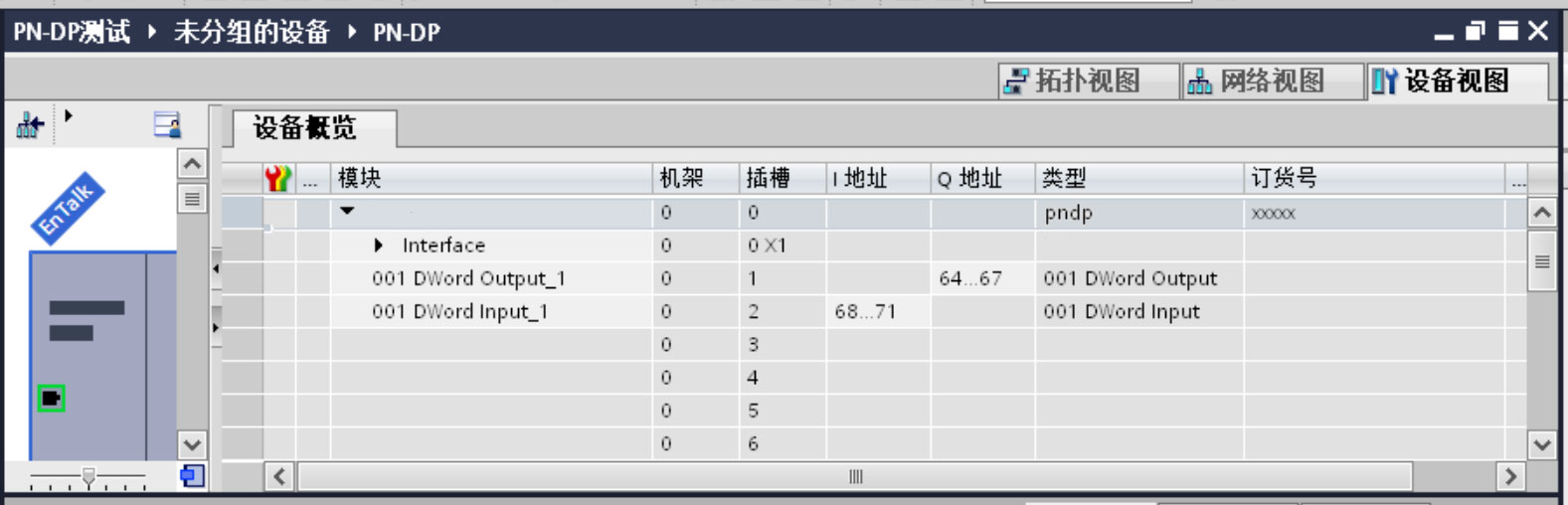 13、双击PROFINET转PROFIBUS网关进入设备视图,设置所需要的输入输出字节数长度;
