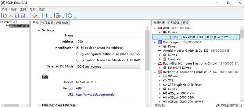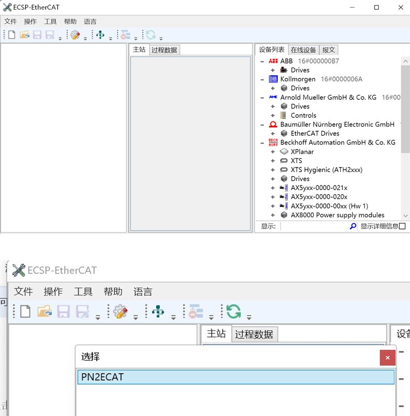 7、 找到需要的从站设备,如果没有请导入对应的ESI文件(本例为ABB伺服);