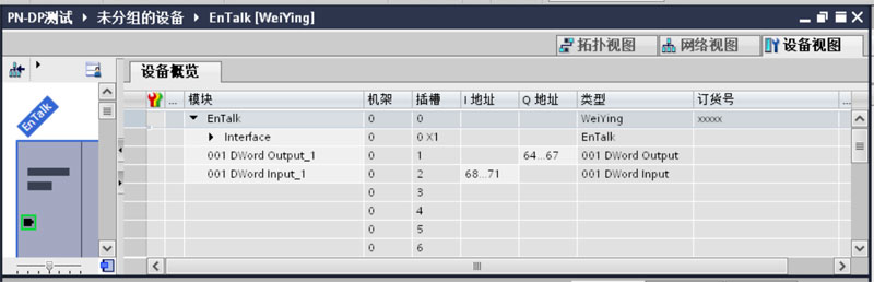 4、 双击网关进入设备视图,设置所需要的输入输出字节数长度;