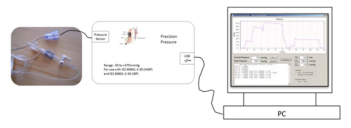 该系统使用标准 IBP 传感器,该传感器被发现可以轻松连接到医疗设备中的各种压力系统。