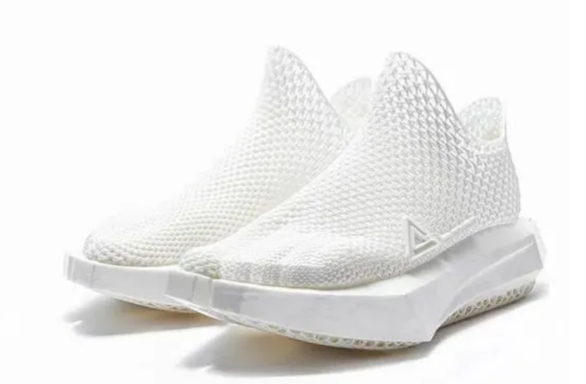 匹克3D SPHERE“源型”就是通过华曙高科选择性激光烧结技术一体成型打印的,鞋子取消了传统的鞋带鞋舌设计,通过扫描双脚得到的数据来进行100%的定制化服务,鞋面上连脚趾的形状都清晰可见。