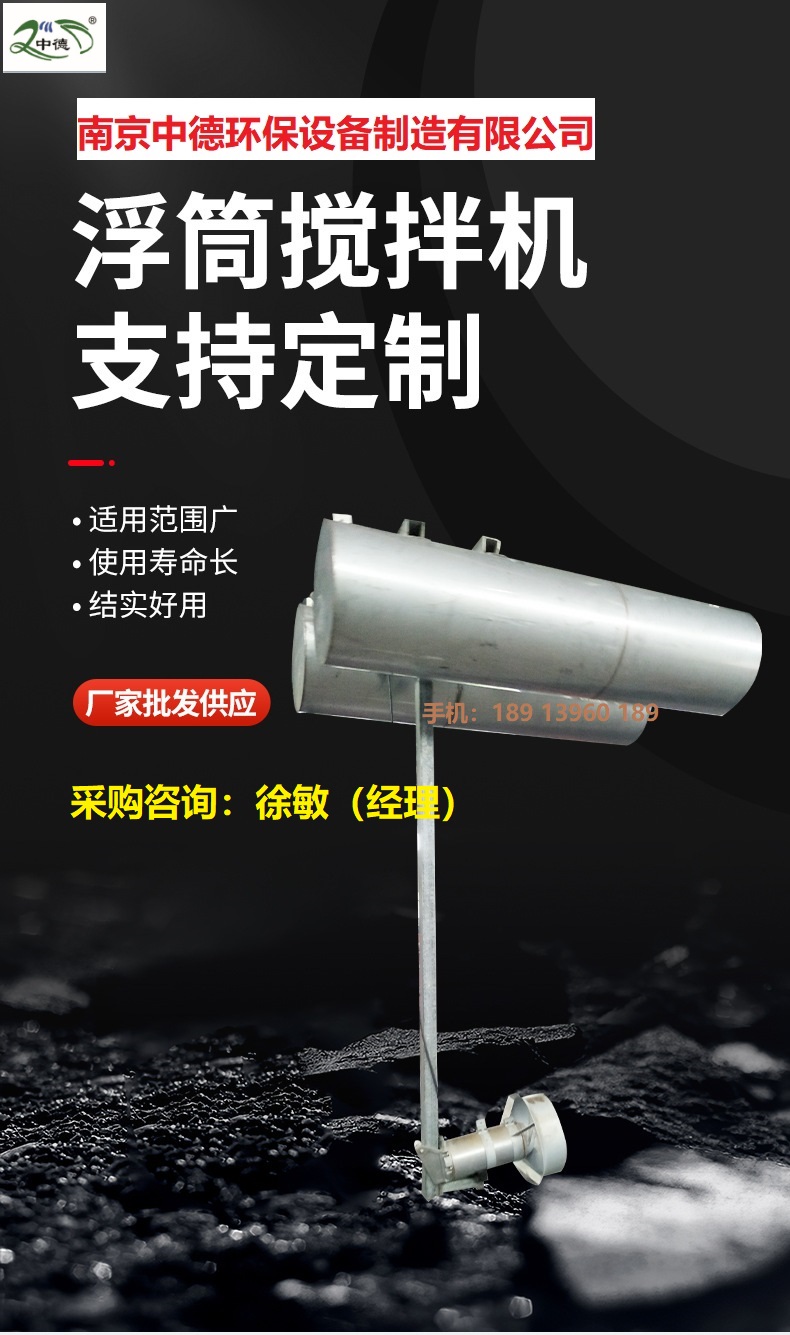 1、立式环流搅拌机的浮筒有玻璃钢材质也有不锈钢材质,浮筒搅拌机的紊流面积大,作用区域广,搅拌温和、均匀,能有效地减少甚至消除搅拌死角,不会对活性污泥的絮状结构和菌胶团产生破坏作用;