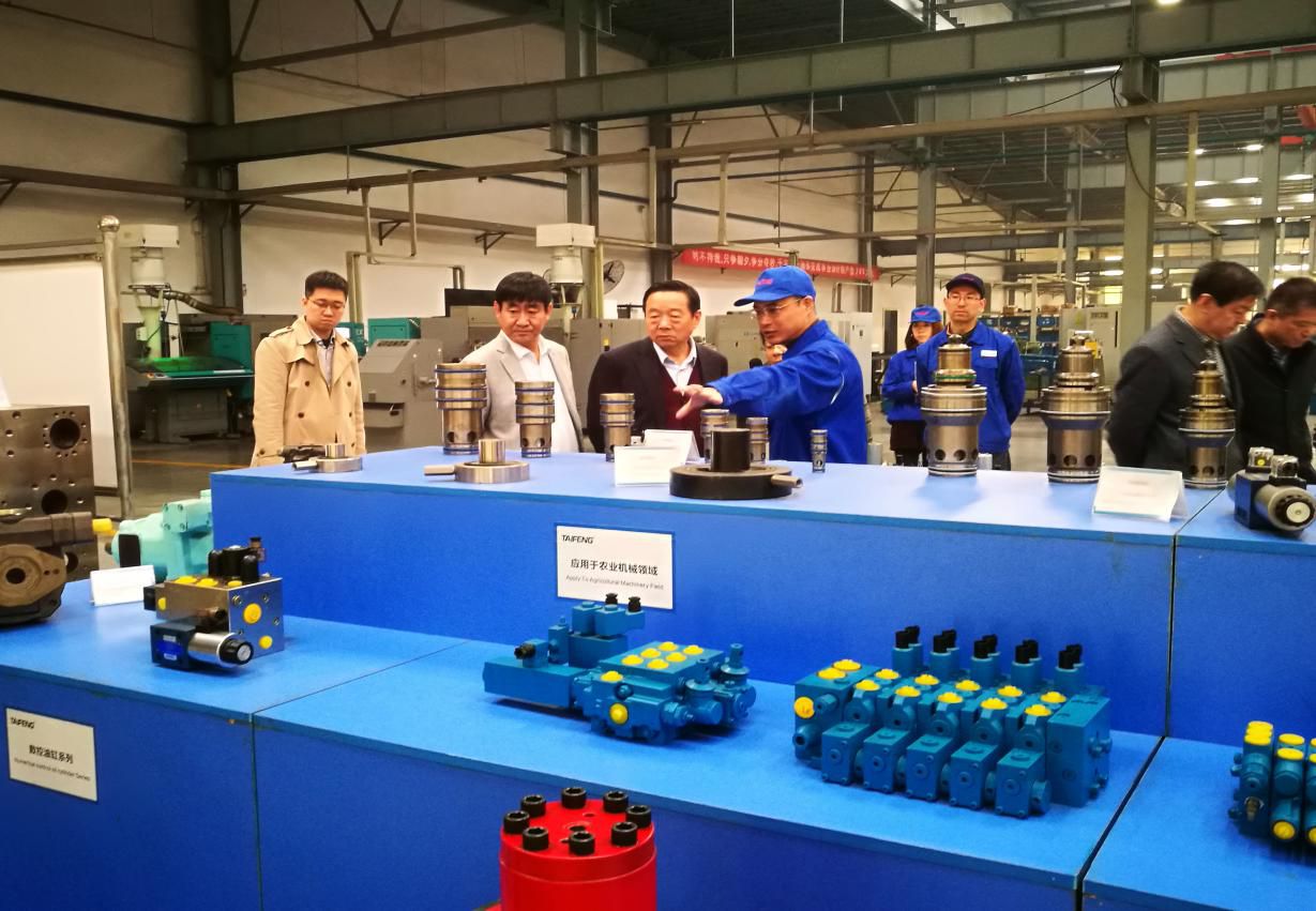 在公司副总经理沈先锋及公司领导的陪同下张德宽参事一行实地参观了泰丰的二通插装阀生产及装配车间、泵事业部、系统分公司及国家强基工程项目。沈总作为公司技术中心的主任,就企业技术改造相关事项向张德宽参事做了重点汇报。