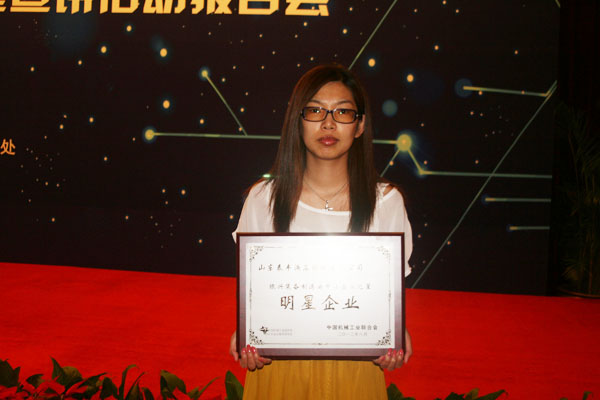 2012年8月8日,中国机械工业联合会在北京召开“中国机械工业成长型中小企业之星宣讲活动报告会”,会议旨在总结、表彰、宣传入选明星企业和明星企业家在振兴装备制造业中作出的贡献。我司获得了中机联的肯定,获得了“振兴装备制造业中小企业之星”明星企业的荣誉称号,董事长王振华获得了“振兴装备制造业中小企业之星”明星企业家的荣誉称号,并被授予了奖牌。