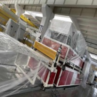 PVC石塑地板生产线由除湿烘干高低混合机组、自动真空上料机、双螺杆高效挤出机、由大板模具结构出料进行五辊定型模定型、排辊托冷装置、裁边装置、牵引机、自动切割机、自动抬板机、排辊输送机等组成。整机具有塑化均匀,挤出量稳定,产量高 ,寿命长等优点。