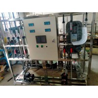 采用预处理、反渗透技术、超纯化处理以及后级处理等方法,将水中的导电介质几乎去除,又将水中不离解的胶体物质、气体均去除至很低程度的水处理设备。
