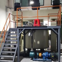 2.半自动线生产:计量斗、称重和输送系统、储罐、5000L分散机预混基料、自动投粉、烤箱烘干、3000L、2000L、1100L行星、动混、强分进行制胶,配套真空、冷却装置,完成分散、混合、真空工序,进行生产。此工艺产量稳定,适合中大规模投产。