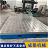 铸铁平台外观基本上是箱体式,工作面有长方形、正方形或圆形,铸铁平台材料为HT200-300,QT400-600,采用刮研工艺,工作面上可加工V形、T形、 U形槽、燕尾槽、圆孔、长孔等,大型铸铁平台是用于工件、设备检测、划线、装配、焊接、组装、铆焊的平面基准量具。