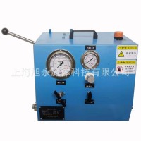 2、利用进口气动泵产生液压压力源,适用于压力范围为5Mpa到740Mpa之间,根据用户实际需要的试验压力范围订制相应等级的动力单元/便携试验台。