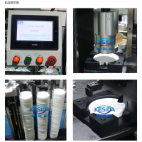 本机用于过滤器的自动组装超声波焊接.转盘4工位一出一设计.底盒人工来料.拉带输送底盒.人工在线将碳包放入底盒内.放入碳包的底盒机械手放入转盘夹具.过滤棉堆叠式放料.可切换式机构.针剌吸盘联动机械手...