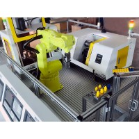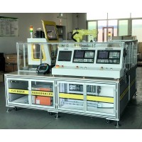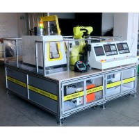 本套设备是以小型的柔性制造系统为载体,主要特点是占地空间小、操作安全、师生容易上手;主要是由一台工业6轴自由度机器人、一台柔性数控车床、一台柔性数控铣床、PLC工作站、原料仓、成品仓、中控台等部份组成,实现自动化上下料、加工等无人工作环节,机器人按指令分别给两台机器送料取料,该系统能够实现工业机器人上下料工作站系统的编程、上下料系统的集成、PLC系统编程、单片机、现场总线的通讯实训、机器人编程、数控编程、数控加工等环节。让学生轻松掌握工业6轴机器人上下料与数控机床组建工作站系统,能满足学生对工业机器人学习及操作的需要,实现和工厂实际情况无缝对接,涉及的知识点丰富、综合,系统性强,学生通过该套系统的学习与训练,对智能无人工的组建整体性应用有全面的了解与体验。