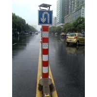 太阳能交通警示柱顶部可配:标志牌配有:右侧行驶、禁止掉头标志、掉头标志、限速标志等、文字配四字警示语:注意安全、车辆慢行、严管区域、单向行驶等均可定制、