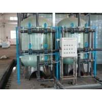 整个水处理系统分为预处理系统、反渗透为主的脱盐系统、精处理系统,达到超纯水水质。整个水处理系统有加热功能,根据不同的用水温度需要调整进水温度。预处理系统由絮凝剂和杀菌剂加药系统、全自动多介质过滤器、全自动活性炭过滤器、预处理产水箱、预处理输送泵组成。