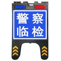 本产品是一款可折叠的临检、查车、施工、勘察等警示牌,方便携带、重量轻巧;DC充电口,可直接充电,运营成本低;实用性强、红蓝爆闪、亮度高、动态警示、警示效果好等特点;具有发光效果,灵活性高,根据现场需求可设计不同内容展示;锂电池更耐用,3年以上使用寿命,所以深受各单位喜爱。 产品组成:可折叠式支架+反光膜+发光单组。