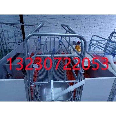 母猪产床,主体采用热浸锌管或喷漆管焊接,使其结构 合理,经济实惠,质量和寿命大幅提高,成为各大规模化养猪厂的 ,仔猪塑料地板,母猪球墨铸铁地板,扁钢大梁支撑。含母猪食槽,仔猪圆形补料槽,保温箱,电热板。