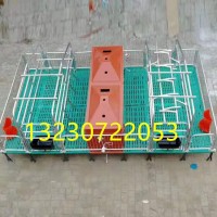 母猪产床,主体采用热浸锌管或喷漆管焊接,使其结构 合理,经济实惠,质量和寿命大幅提高,成为各大规模化养猪厂的 ,仔猪塑料地板,母猪球墨铸铁地板,扁钢大梁支撑。含母猪食槽,仔猪圆形补料槽,保温箱,电热板。