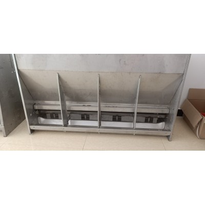 育肥双面槽分为育肥大单面箱和大双面箱,小猪双面中箱,仔猪单面小箱,母猪槽。一个双面能喂二十头以上,单面十头以上。一次投料一百斤可喂1--3天,省时省力,增重快。干净卫生,减少肠道疾病。猪始终保持八分饱,处在生长 状态。
