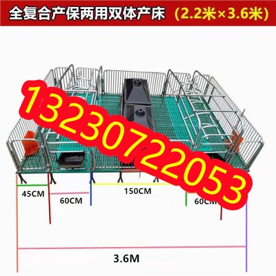 母猪产床,主体采用热浸锌管或喷漆管焊接,使其结构 合理,经济实惠,质量和寿命大幅提高,成为各大规模化养猪厂的 ,仔猪塑料地板,母猪球墨铸铁地板,扁钢大梁支撑。含母猪食槽,仔猪圆形补料槽,保温箱,电热板。