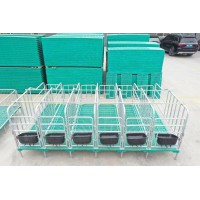 定位栏采用热镀锌管厚度2.5,管粗1寸,可以定做国标2。5热镀锌的,11片为一组,可供10头母猪。母猪产前7天放到定位栏中保胎。
