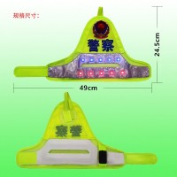 led袖标顶部背面是用魔术贴吊扣与衣袖连接,方便佩戴。底部采用服装(魔术贴)粘带,围绕手臂一周松紧可自由调节。